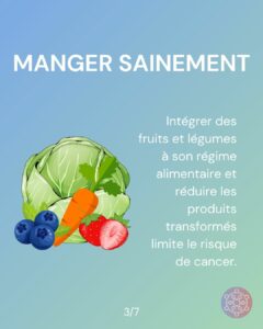 Sources : Institut National du Cancer (INCa) – Prévention des cancers Organisation mondiale de la Santé (OMS) – Cancer prevention World Cancer Research Fund – Diet, nutrition & cancer Santé publique France – Tabac, UV et dépistage.