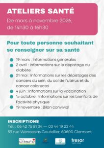 Saint-Just-en-Chaussée, le 24 février 2026 – La CPTS Trésor, en partenariat avec le Centre Socioculturel de Clermont, le CCAS et le CLS du Clermontois, annonce l’organisation d’un cycle d’ateliers santé gratuits à destination des quartiers prioritaires clermontois, de mars à novembre 2026.